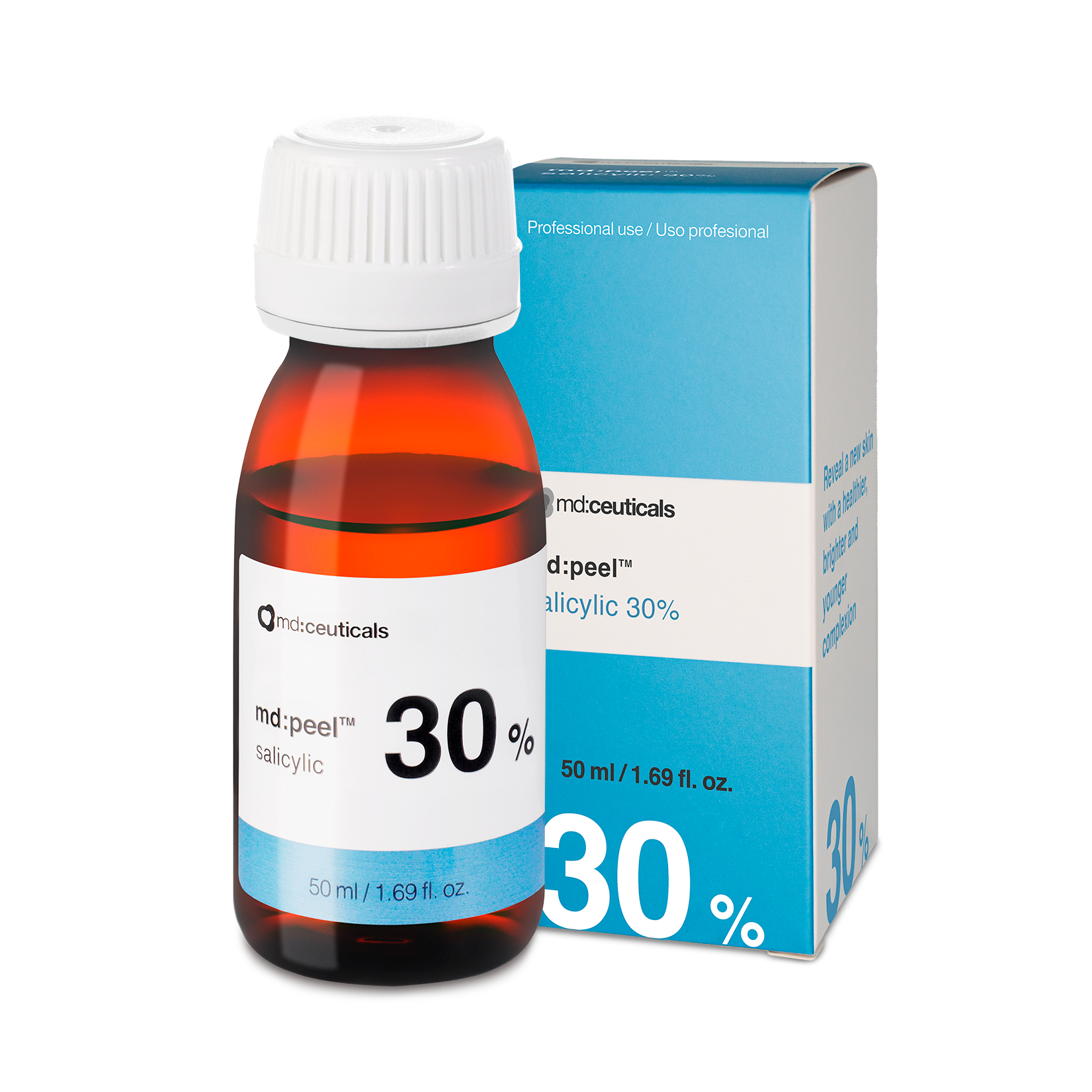 پیلینگ سالیسیلیک اسید ٪۲۰ و ٪۳۰ از برند md:ceuticals یک لایهبردار تخصصی از خانواده BHA است که با نفوذ عمیق به منافذ، چربی اضافی پوست را تنظیم کرده و به درمان آکنه، کومدونها و بافت ناصاف پوست کمک میکند.