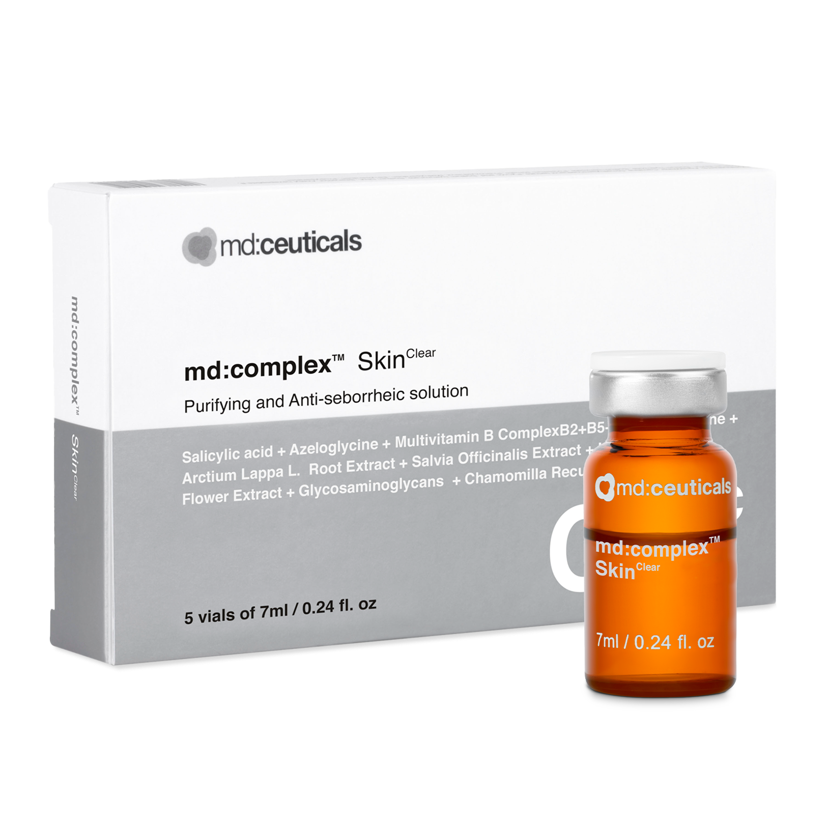 Skin Clear یک کوکتل کلینیکی از برند md:ceuticals است که برای درمان آکنه فعال، پوست چرب و کومدونهای بسته و باز طراحی شده است. این فرمول با ترکیبات آنتیباکتریال، ضدالتهاب و کنترلکننده چربی، فعالیت غدد سباسه را تنظیم کرده و التهاب و جای آکنه را بهبود میبخشد.